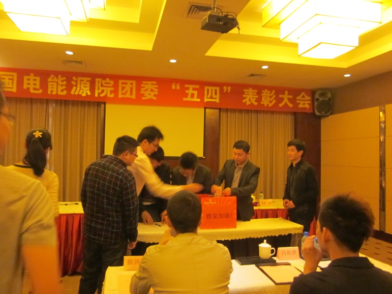 源牌集團(tuán)五四表彰總結(jié)大會(huì)在集團(tuán)公司領(lǐng)導(dǎo)的支持和集團(tuán)公司黨委的關(guān)心下于2013年4月25日在海外海賓館舉行。出席本次活動(dòng)的領(lǐng)導(dǎo)有:杭州市直機(jī)關(guān)團(tuán)工委書(shū)記蘇學(xué)卿、國(guó)電能源院黨委副書(shū)記鄭喜梅、國(guó)電能源院團(tuán)委書(shū)記付樂(lè)。表彰大會(huì)前,由主持人倡議對(duì)于4月20日8時(shí)2分在四川省雅安市蘆山縣發(fā)生7.0級(jí)地震中的遇難同胞表示哀悼,全體起立默哀三分鐘,并進(jìn)行捐款。