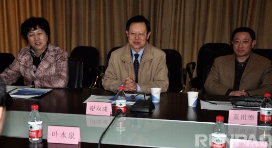 圖為謝雙成一行在我院進行座談,從左往右依次為:陳瑋、謝雙成、董祖德