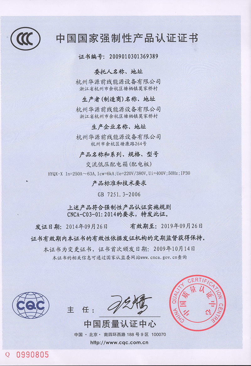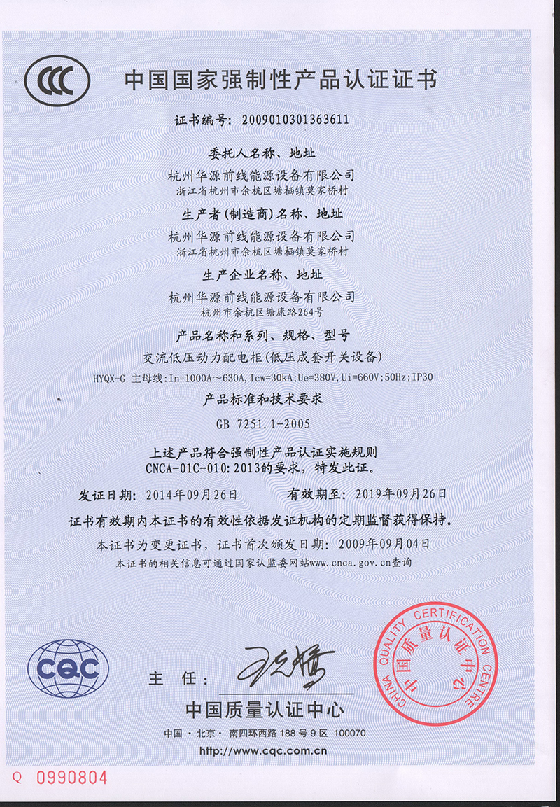2014年10月,由中國質量認證中心一行等兩人組成的專家組對杭州華源前線能源設備有限公司進行了“3C”認證監督審核及換版審核。公司各部門認真配合審查工作,虛心聽取監督審核組專家對我司質量管理工作的建議,最終順利通過審查。3C認證的全稱為強制性產品認證制度,它是<中國政府為保護消費者人身安全和國家安全、加強產品質量管理,依照法律法規實施的一種產品合格評定制度,3C認證審核的目的,是評價我司是否有能力保證批量生產的產品與試驗合格樣品的一致性。通過嚴格的文件審核和實地檢查,專家組認為我司質量保證能力能夠持續穩定的提供符合要求的產品,能夠保證產品的一致性,“3C”認證檢查合格,證書有效期延至2019年。 通過此次現場審核,將會使公司的管理更加規范和高效,產品和服務的質量更加穩定,提升了華源前線在客戶心中的地位,增強了客戶對公司的信賴。在未來的工作中,我們仍將繼續完善,及時采取措施,持續改進,為客戶提供更優質的產品和服務。