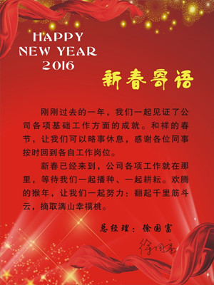 早上鬧鈴一響,又見廠旗飄揚(yáng)。2016年2月15日,這是春節(jié)假期后的第一個(gè)工作日,源牌集團(tuán)杭州華源前線能源設(shè)備有限公司的各位同事重返工作崗位,懷揣著愉快的心情,祝福我們的團(tuán)隊(duì):開工大吉…… 一早,源牌集團(tuán)黨政聯(lián)席會領(lǐng)導(dǎo)鄭喜梅、陳永林、趙希樵、許國文等一行,來到源牌集團(tuán)各部各子公司拜年。華源前線董事長蔣聞文與總經(jīng)理徐國富陪同,親切走訪慰問華源前線的每一位員工,與大家親切交談、一一握手。一句簡單的新年好,表達(dá)著領(lǐng)導(dǎo)班子對全體工作人員的問候與祝福。華源前線總經(jīng)理徐國富也發(fā)表新春寄語,從即日轉(zhuǎn)入工作模式,以飽滿的熱情迅速投入到新一年的工作中。