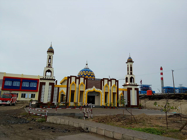 圖片右上方藍色廠區就是吉利普多燃煤電站,于2012年投運,華源前線電站輔助鍋爐設備應急啟停無故障運行已有五年,這份漂亮的成績單也為我們贏得塔卡拉燃煤電站電站輔助鍋爐工程加分不少。而眼前這個特色建筑就是印尼塔卡拉項目現場,別懷疑,這就是電廠正門,推開這扇門,讓我們去電站輔助鍋爐房看看吧: