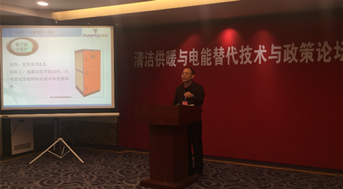 徐國富作了題為《電加熱供熱技術現狀及其發展》的主題演講,他以豐富的實踐經驗,剖析了當下電采暖領域的典型產品,并指出了一些宣傳誤區。徐總還介紹了國內首臺套~源牌高電壓電極鍋爐產品的眾多案例,采用風電、光電等新能源供熱,在北風呼嘯的時候,讓“北方的寒夜里四季如春”。徐總的報告干貨多,幽默風趣。不時引起到會專家領導會心一笑。