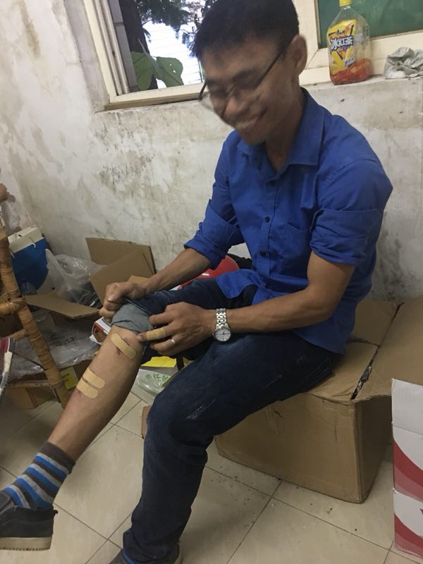 (溫先文經(jīng)理貼上創(chuàng)口貼,那笑容好像做好足底按摩了,繼續(xù)上工地)