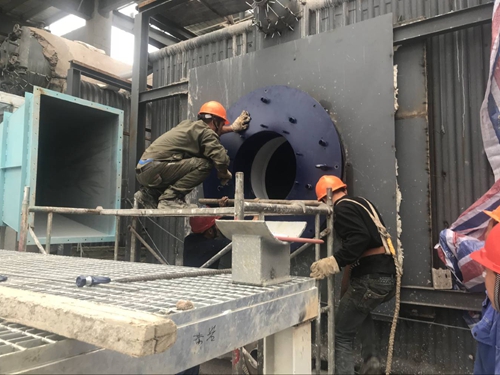 鍋爐設(shè)備到達(dá)現(xiàn)場時(shí),項(xiàng)目經(jīng)理吳玉燕緊急處理場地平整事宜,當(dāng)天下午開始設(shè)備就位: