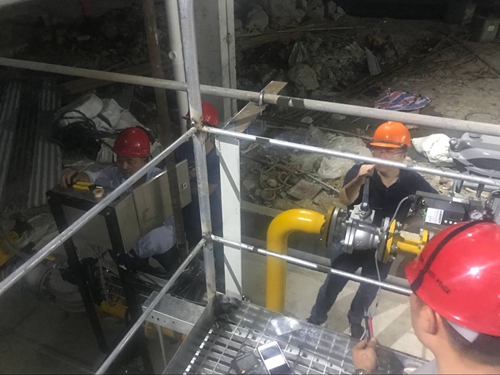 燃燒器的調(diào)試最為艱難,該項(xiàng)目采用新型進(jìn)口低氮燃燒器,在燃燒器廠家無法提供關(guān)鍵技術(shù)完整技術(shù)資料的情況下,我公司的現(xiàn)場電氣調(diào)試工程師盛新、林栓、王鋒通過一次次實(shí)驗(yàn),改變進(jìn)風(fēng)頻率、風(fēng)門開度,摸索出進(jìn)風(fēng)量調(diào)節(jié)比,成功點(diǎn)火。