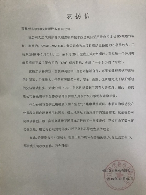 電廠給予我們滿滿地信任,滿溢在表揚(yáng)信的字里行間:
