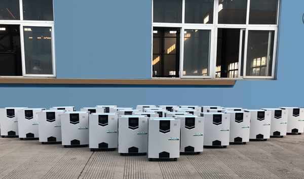 (車間門口成排擺放著當(dāng)天要發(fā)貨的小型直熱機(jī)組)