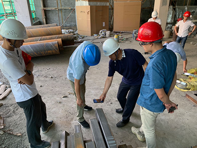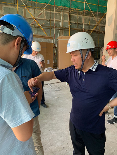 項目總監陸國忠和施工人員交代安裝細節及注意事項: