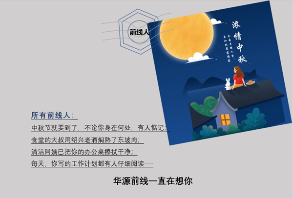 請接收一份來自公司的輕聲問候;“華源前線在想你”