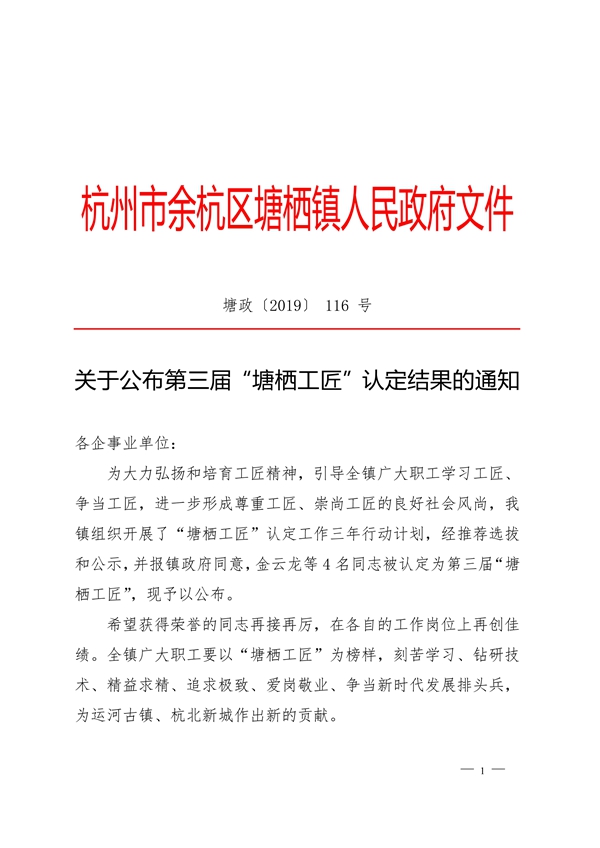 近日,第三屆“塘棲工匠”新鮮出爐,華源前線公司金云龍、陳華斌榮獲“塘棲工匠”稱號。